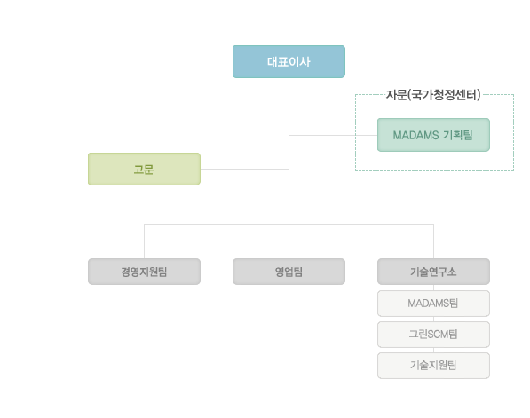 | MADAMS팀 | - MADAMS Package 기획 - MADAMS Package 컨설팅 - MADAMS Package 개발/유지보수 - MADAMS Package 고도화 - MADAMS ASP 사업 기획/추진 |