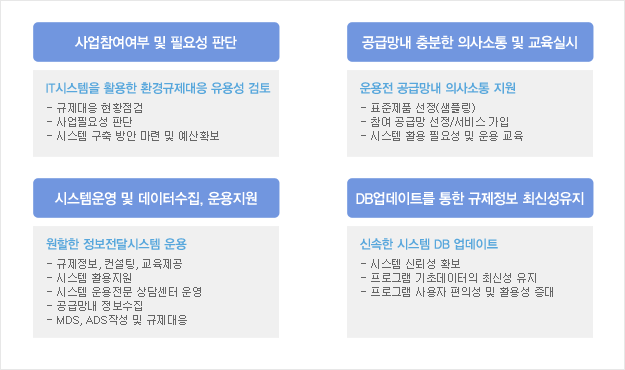 국제환경규제 대응 맞춤형 서비스 제공.(정보제공, 교육, 컨설팅, 홍보)